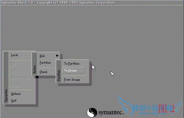 1.选择Loacl→Partition→To Image 将硬盘分区备份为一个后缀为".gho"的镜像文件。