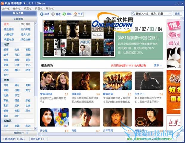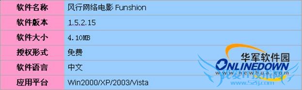 风行网络电影Funshion1.52,软件安装简单快捷,没有捆绑任何工具及插件。界面顶部为菜单栏,其主体部分采用左右布局,通过左上方的风行点播及节目播放按钮,可以让用户在节目列表及播放窗口之间切换。风行将其所有节目按热点、电影、电视、按地区、按年代及合作频道分为6大类,其中每大类中又分为多个小类,让用户可以非常方便、快捷的进行查找。节目内容以电影及连续剧点播为主,操作简单,但节目搜索功能无法使用,连接速度较慢、缓冲时间在80秒左右,画面清晰流畅,并且是完全免费的。其特色之处就是分类详细、操作简单、边下边看。总之作为当今流行的网络视频播放器之一,风行可以说是名副其实。