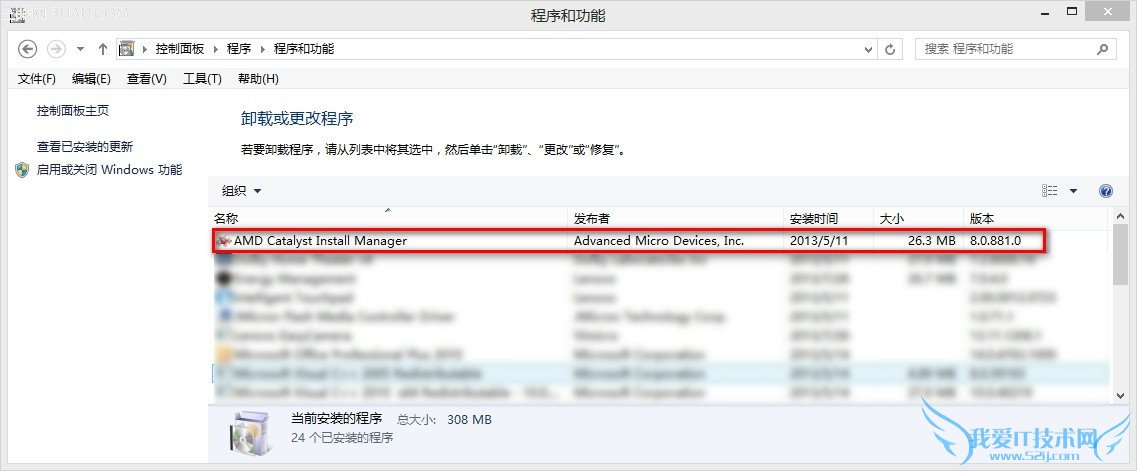 如您发现按照上述两种方法调节屏幕亮度无效,请打开控制面板---程序---卸载程序,在列出的程序列表中,检查是否有“AMD Catalyst Install Manager”程序选项,如下图所示: