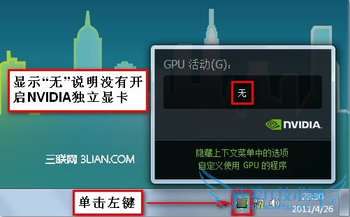 左键单击图标,显示“无”也说明没有开启NVIDIA独立显卡。