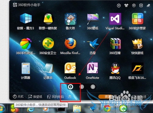 如果他的电脑有360的话,那么就非常好了,360一般都会在任务栏上有一个软件小助手的工具,点击打开后——点击一个向上的箭头,选择截屏,然后将整个屏幕截取下来。