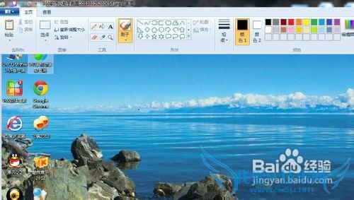 如果没有截图工具,直接按下键盘上的PrtSc键进行截屏然后保存到画图工具在设置为壁纸即可。