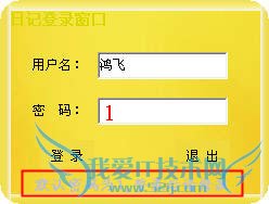 四、登陆软件。双击快捷方式后鸿飞日记本会有一个登陆窗口,提示用户登录密码。默认密码为1。登陆后可自行修改。