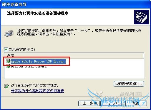 6、选择“Apple Mobile Device USB Driver” ,见图