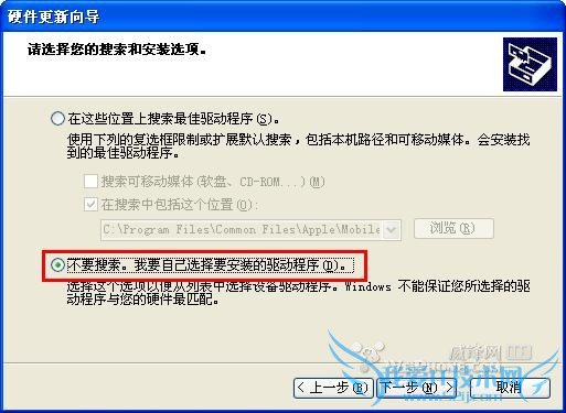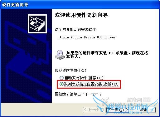 4、安装驱动,找到属性是“Apple”的“USB Composit Device”,点“更新驱动”,弹出对话框,选择下面一个,见图