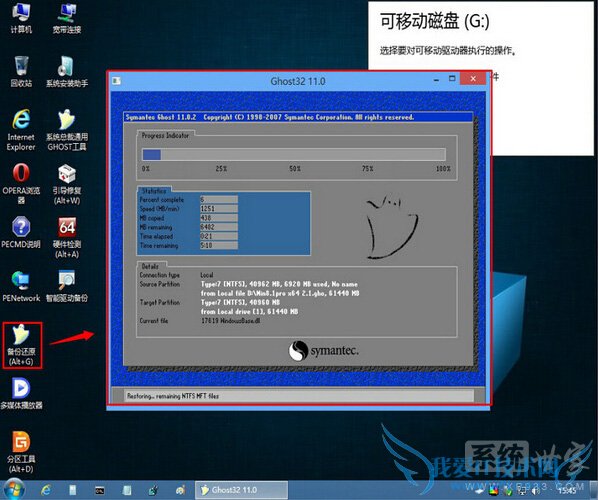 4、用PE里面的ghost工具把GHO克隆进C盘。如下图: