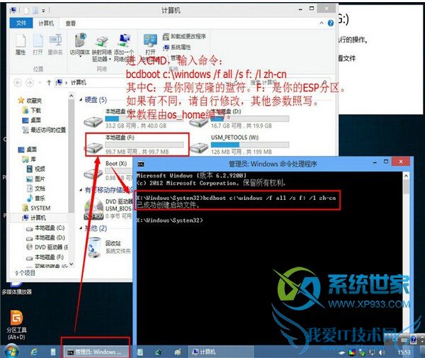 5、输入命令把启动信息指去你的ESP分区。如下图: