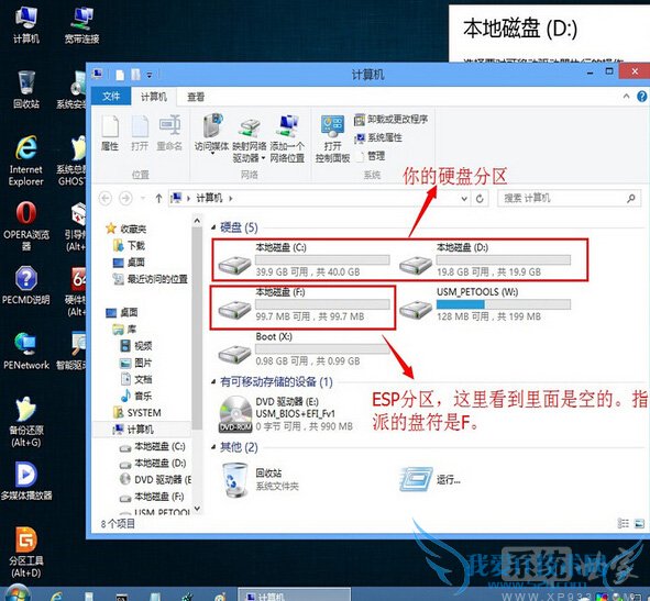 2.10、指派盘符之后,可看到ESP分区容量为空,指派的盘符是F盘