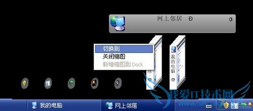 完成设置,我们进行尝试,实现,我们可以看到,在Windows XP系统下,已为用户默认提供了类似Vista、Windows 7系统的任务窗口缩略显示功能,方便我们快速了解到缩略窗口中的对应内容,同时我们也可以看到,借助缩略窗口的右键菜单,我们选择添加到切换列后,则快速显示不同角度、多重样式的切换效果,让我们感到惊喜,更方便进行切换操作。