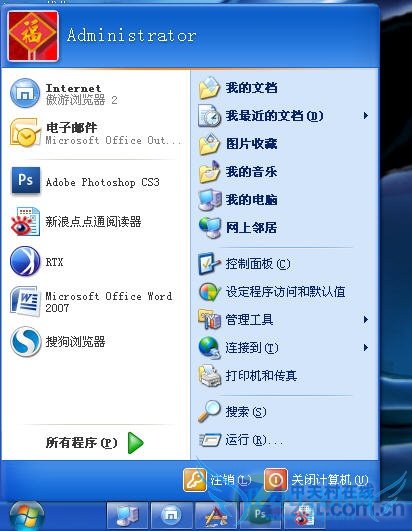 开始菜单仍保持XP样式