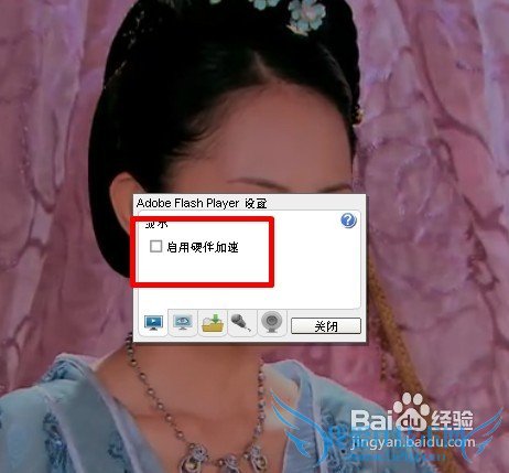 勾选掉启动硬件加速。点击关闭。然后重启浏览器即可。