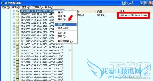 找到后(右边的窗口有ICBC的讯息),点击Del键删除。