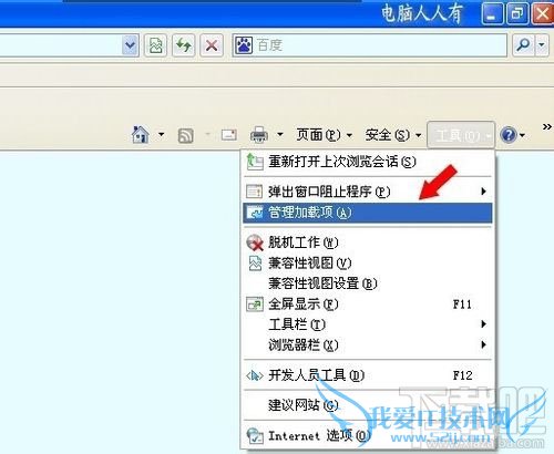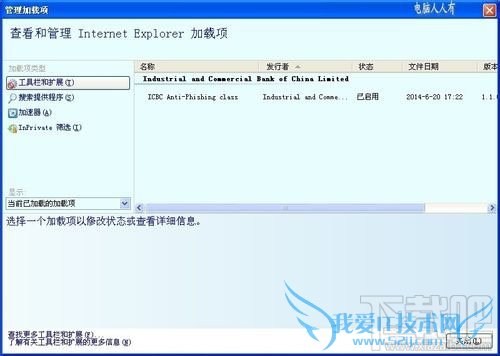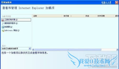 再打开IE浏览器→工具→管理加载项→干净了,重启电脑也没有在随机启动了。