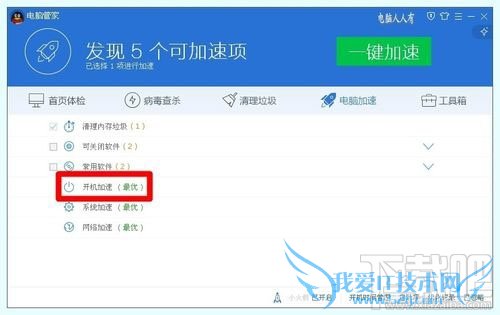 2即便是打开电脑管家中的电脑加速,这里的开机加速也没有多余的启动项,可见这个问题需要用户自行处理了。
