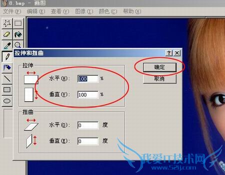 第四步、在“拉抻”中可以修改图片“水平”和“垂直”的比例值,默认值为100%,可以通过修改此数值使图片尺寸增大或减小。