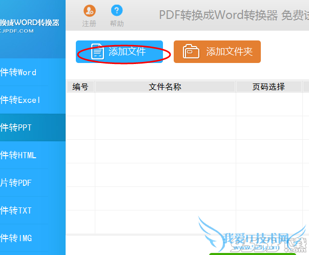 二、添加文件。点击PDF转换成PPT转换器的“添加文件”按钮,将PDF文件添加到程序界面,软件支持添加多个PDF文件。