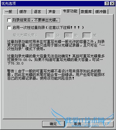 2、在“专家功能”中勾选“启用一次性过量刻录”,并设定要超写的范围。