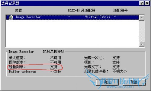 首先刻录机要支持超写。看刻录机支不支持超写可看下边红色的部份。如果刻录机支持该功能,则我们就能使用超写了。