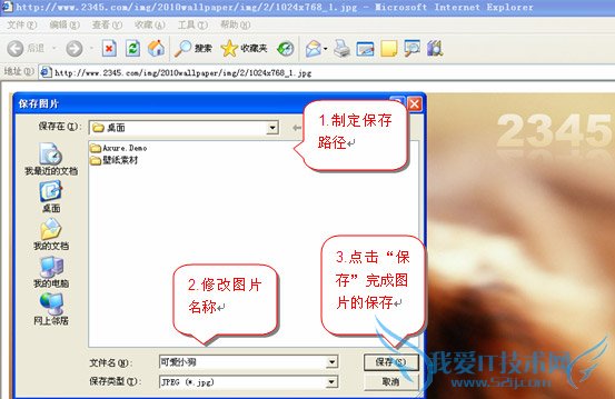 2.在图片上点右键,然后在快捷菜单中选择“图片另存为”,并且指定保存路径: