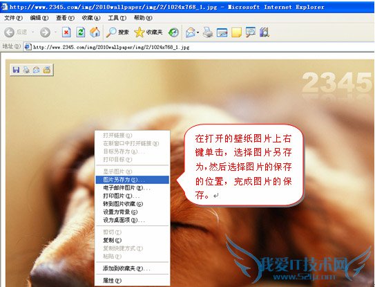 2.在图片上点右键,然后在快捷菜单中选择"图片另存为",并且指定保存路径:
