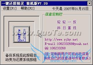 *单击“备份/还原”按钮(此按钮为智能按钮,备份分区后自动变为还原系统按钮)或按F11键备份/还原C盘系统;