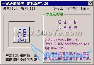 “启用/禁用简单模式”如果启用简单模式,在开机时按下F11键10秒钟后自动进行系统还原(10秒内按ESC键可取消还原并进入主界面),实现了真正一键还原。(如下图)