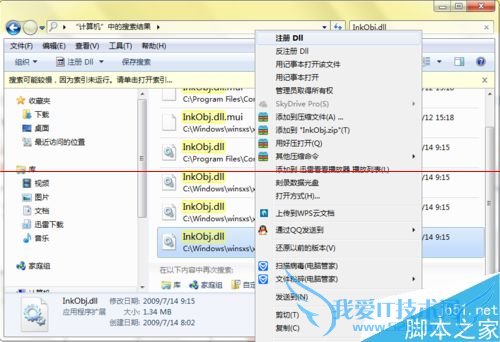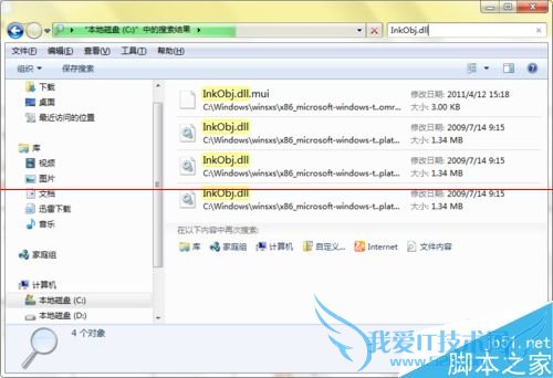 2、打开资源管理器,在C盘中搜索到InkObj.dll