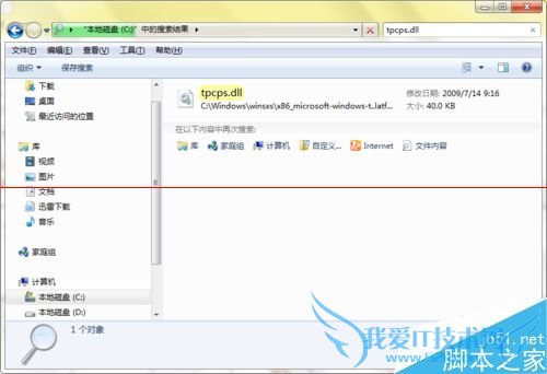 2、打开资源管理器,在C盘中搜索到tpcps.dll