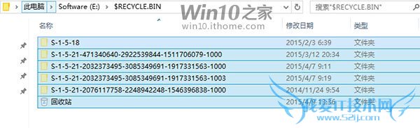 打开回收站文件夹,发现里面有很多名字类似S-1-5-xxxx的文件夹,如下图。