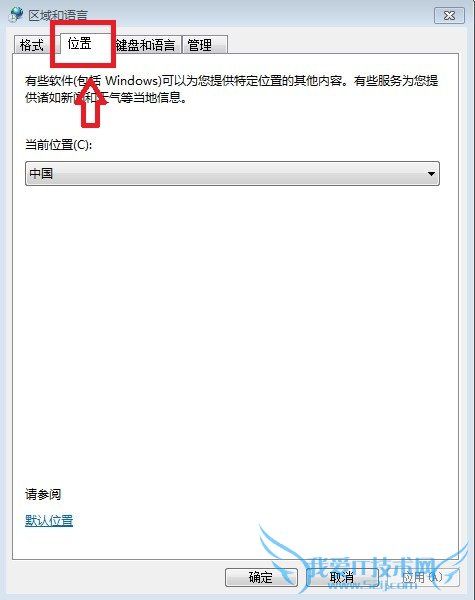 三、接下来会弹出一个“区域和语音”设置属性对话框,我们在顶部切换到“位置”选项卡,如下图所示: