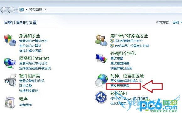 二、进入控制面板之后,我们再点击进入“更改显示语言”设置选项,如下图所示: