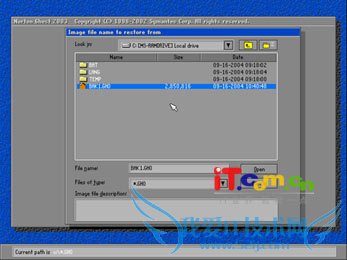 当需要还原备份文件时,运行Ghost在主界面点击菜单 “Local”→“Partition”→“From Image”(如果是还原硬盘的备份文件那点菜单“Local”→“Disk”→“From Image”),在弹出窗口中选择要备份的GHO文件,然后选择还原在哪个分区或者硬盘中,选好后点击“Yes”按钮就可以进行还原了。(图8)