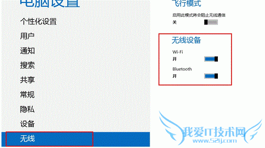 2. 针对Win8系统,会有单独的蓝牙开启关闭界面;