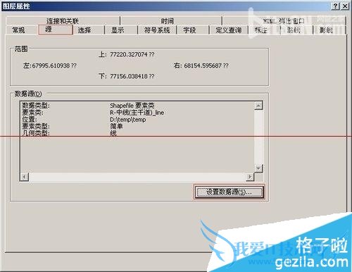 2、打开属性窗口中选择“源”,单击设置数据源按钮,重新设置数据源;