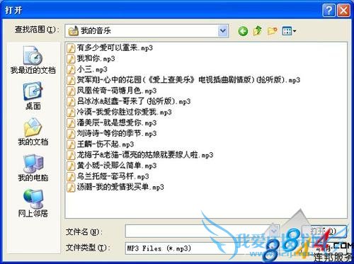 进入Free Ringtone Maker主界面以后,用户可以看到在主界面中“Choose a Song from My Computer”按钮从我的电脑中选择音频文件;单击该按钮以后即可打开音频选择窗口,在此选择你要制作铃声的音频文件,单击“确定”按钮即可将音频文件添加到主窗口中。
