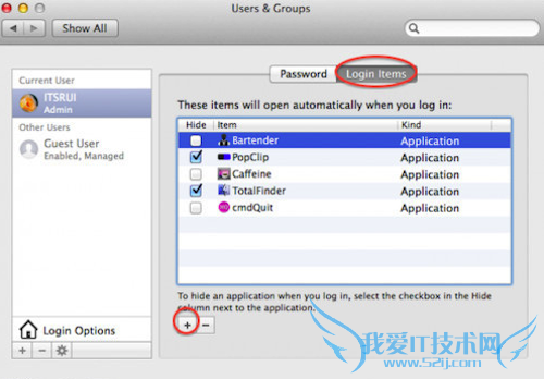 系统偏好设置>用户组与群组>个人登陆项(如图)