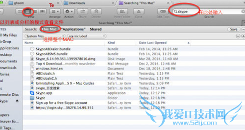 3、注意要用列表方式进行搜索文件,搜索范围调整为整个Mac
