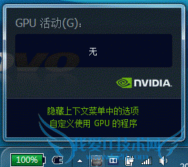 新版NVIDIA显卡驱动在通知区域带有GPU活动提示图标,可以查看NVIDIA独立显卡当前是否开启。