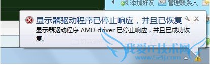 欢迎您访问我爱IT技术网,今天小编为你分享的电脑教程是日常使用电脑方面的电脑常识:使用中提示“显卡驱动已经停止响应”,学会并运用这些电脑常识,让你快速玩转电脑及互联网方面的知识,下面是详细的分享!
