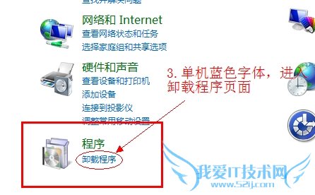 卸载软件步骤(以Win7为例,XP仅作文字说明):
