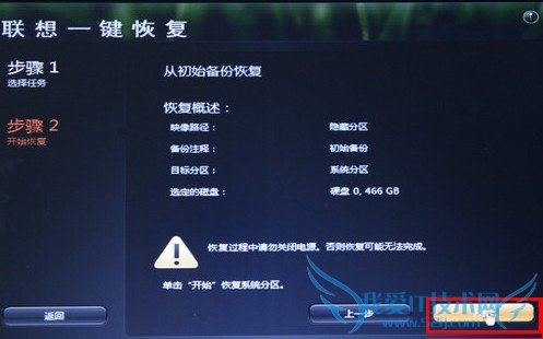 ⑷单击 开始 按钮 选择 确定 系统开始恢复