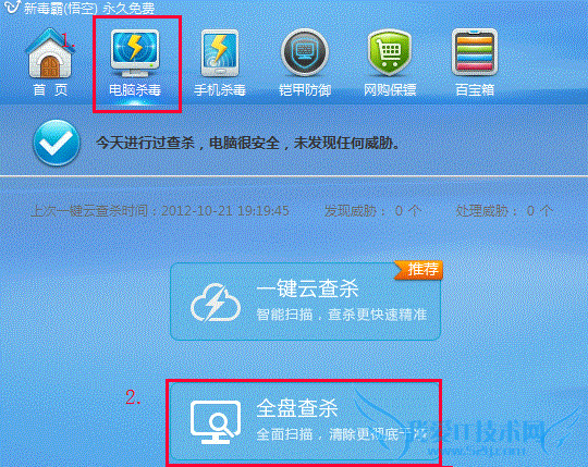 2. 查杀病毒,使用常见软件查杀病毒(推荐工具下载网站请点击),一些恶意病毒会导致CPU占用率过高,从而使机器运行其他程序时无法正确运行,导致机器出现卡死等其他问题