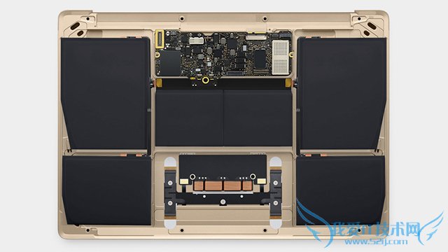 轻量化的机身并未束缚其性能。其中低配版内建8GB内存和256GB SSD,搭配英特尔 1.1GHz Core-M超低功耗处理器(Intel HD Graphics 5300),功耗仅5W,因此新Macbook采用了无风扇设计,再加上充分利用内部空间的多层形状的锂电池,整机续航时间依然达到了9个小时。