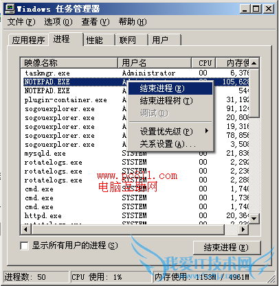 例如,如上面的图片,你会看到记事本程序状态列表中未响应状态。