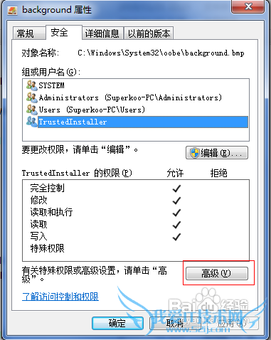 默认情况下,系统文件管理员(Adminitrators)只有读取和读取执行的权限,没有完全控制的权限,因此是没有办法修改的。只有TrustedInstaller才有完全控制的权限。因此需要将Adminitrators设置为完全控制的权限。