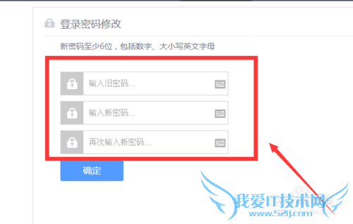 5、进入 登录密码修改 页面,输入旧密码和新密码 点击确定即可完成。