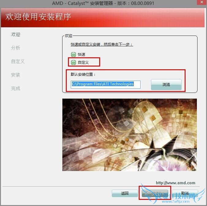 选择“自定义”或者“快速安装”,之后如果想要更改安装的路径,那么选择浏览即可,如果不改路径,直接点击“下一步”即可(推荐还是选择默认路径进行安装),如图:
