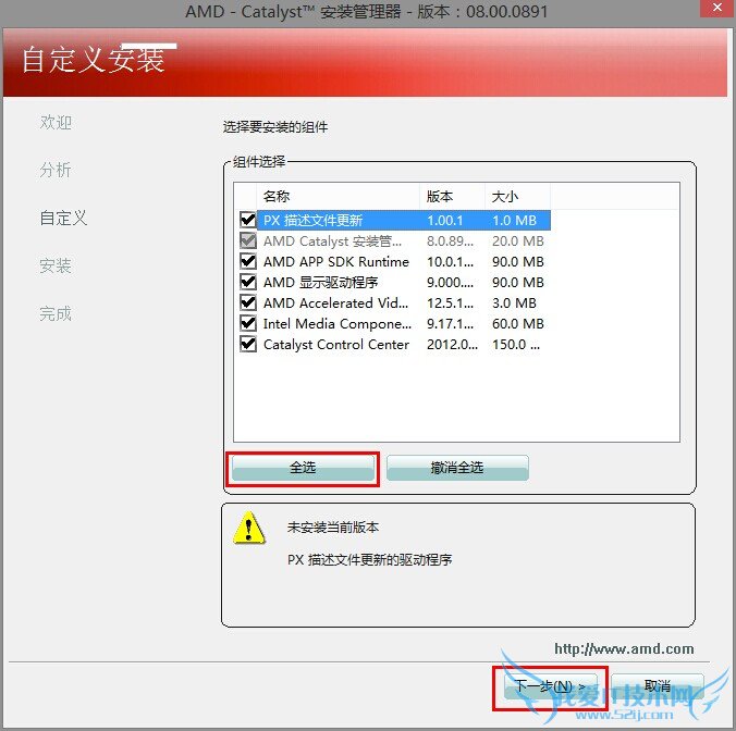 分析完成,出现安装提示界面,点击“全选”,“下一步”,如图: