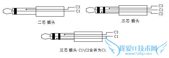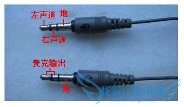 一般情况下,前置音频主要用于接耳麦,耳麦的插头是耳机和麦克分开的,都采用三芯的插头。现在的麦克基本都是电容式话筒,连接线只有两根,标准的接法是把两根芯短接成一根左话筒输出线,外套作为i接地线,如下图。