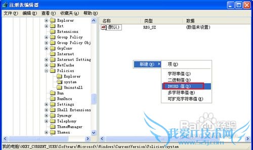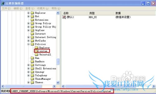 3.依次展开HKEY_CURRENT_USERSoftwareMicrosoftWindowsCurrentVersionPoliciesSystem。